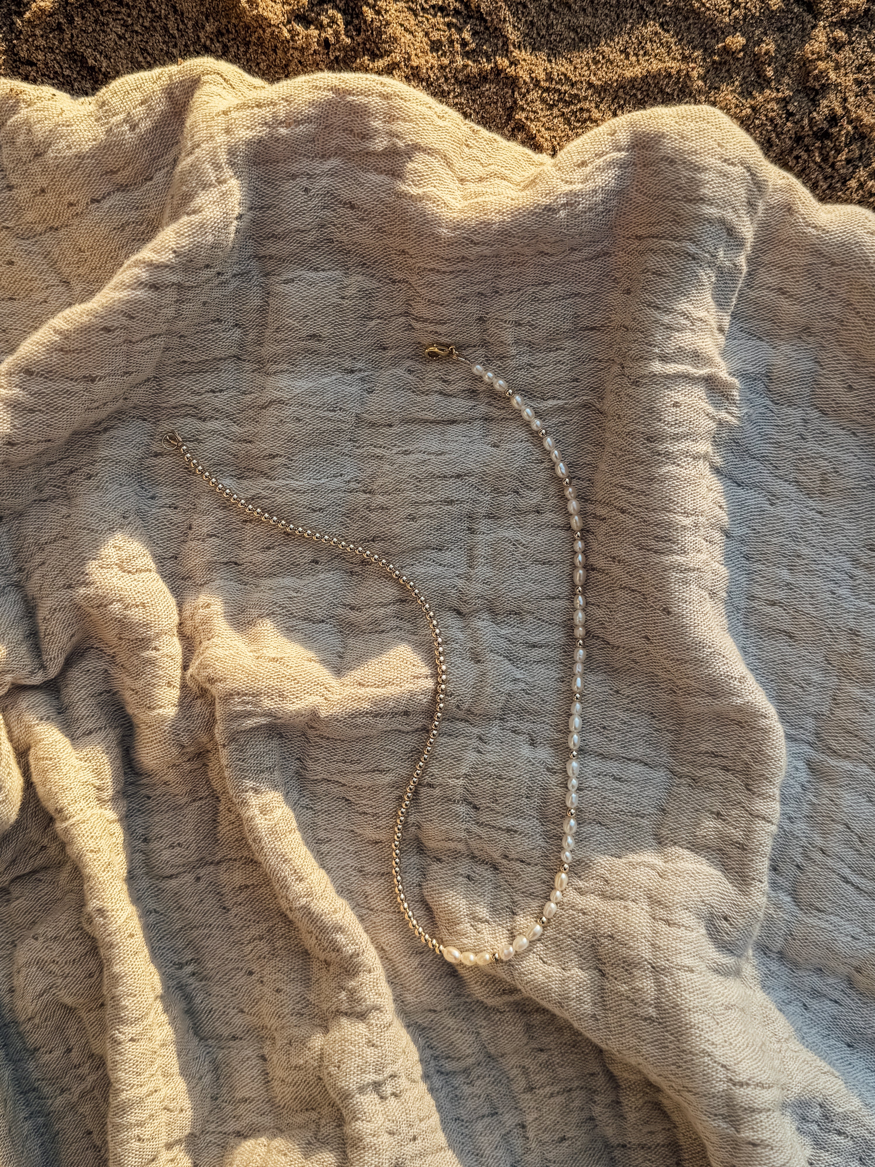 Enhance your jewelry collection with the stylish St. Tropez Necklace, a piece that embodies the exquisite charm and luxurious allure of its namesake French Riviera town. This necklace is a testament to timeless beauty and sophistication, designed to captivate and enchant. Crafted with precision and care, it features delicate 3mm 14K gold-filled beads that glimmer with a soft, warm glow, reminiscent of the sun-kissed shores of St. Tropez.